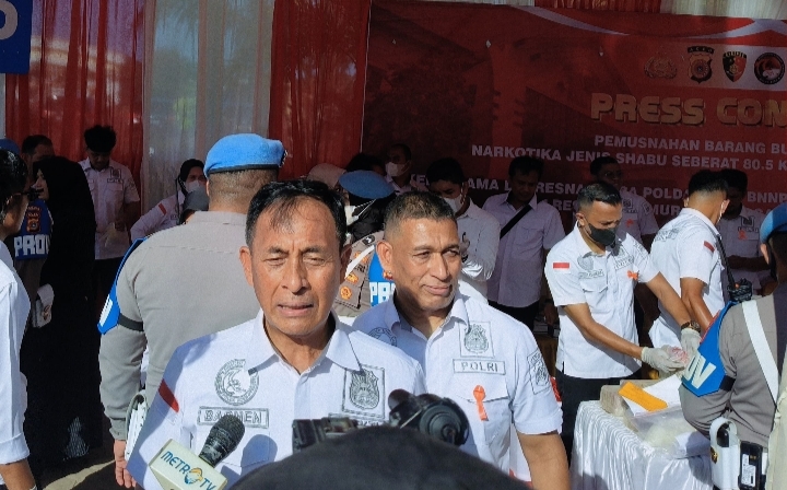 Banda Aceh — Dirresnarkoba Polda Aceh, Kombes Pol. Shobarmen, mengungkapkan bahwa barang bukti narkotika jenis sabu seberat 80,5 kilogram yang dimusnahkan hari ini berasal dari Thailand—Indonesia, dan rencananya akan diedarkan oleh pelaku ke wilayah Sumatera Utara.