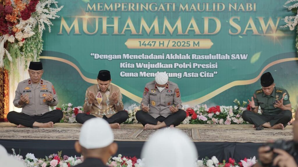 Banda Aceh — Polda Aceh menggelar peringatan Maulid Nabi Muhammad SAW 1447 Hijriah sekaligus doa bersama untuk keselamatan negeri. Kegiatan berlangsung di Masjid Babuttaqwa Mapolda Aceh, Kamis, 11 September 2025.