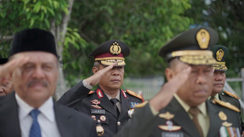Banda Aceh — Wakapolda Aceh Brigjen Pol. Ari Wahyu Widodo, mengikuti upacara Ziarah Nasional dalam rangka memperingati Hari Pahlawan ke-80 tahun 2025 yang berlangsung di Taman Makam Pahlawan (TMP) Kota Banda Aceh, Senin, 10 November 2025.